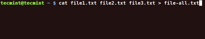 The command can also be used to concatenate (join) multiple files into one single file using the “>” Linux redirection operator.