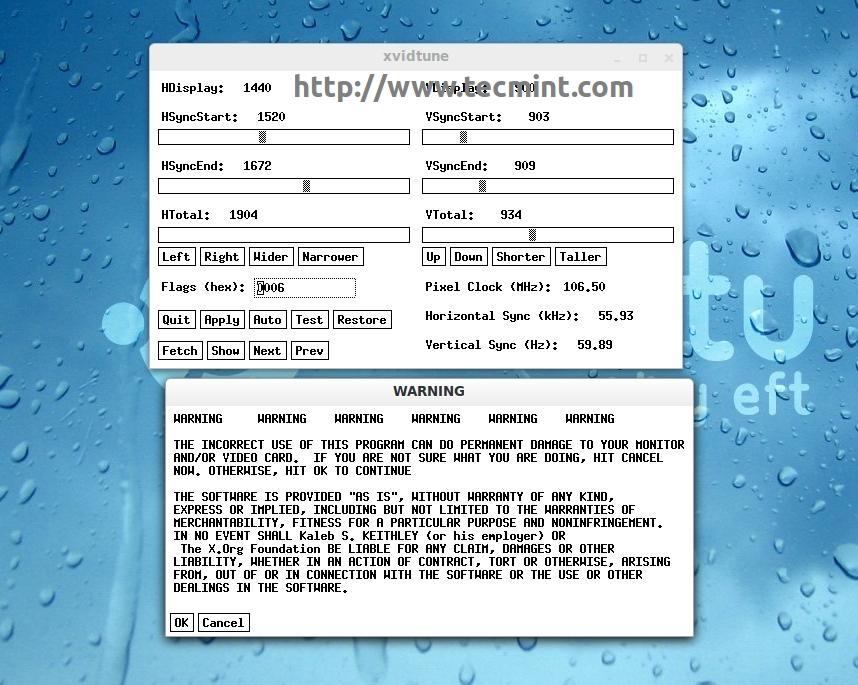 The xvidtune command is a video mode tuner for Xorg, which provides a client interface to the X server’s video mode extension.