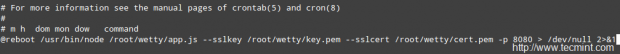 @reboot /usr/bin/node /root/wetty/app.js -p 8080 > /dev/null 2>&1
