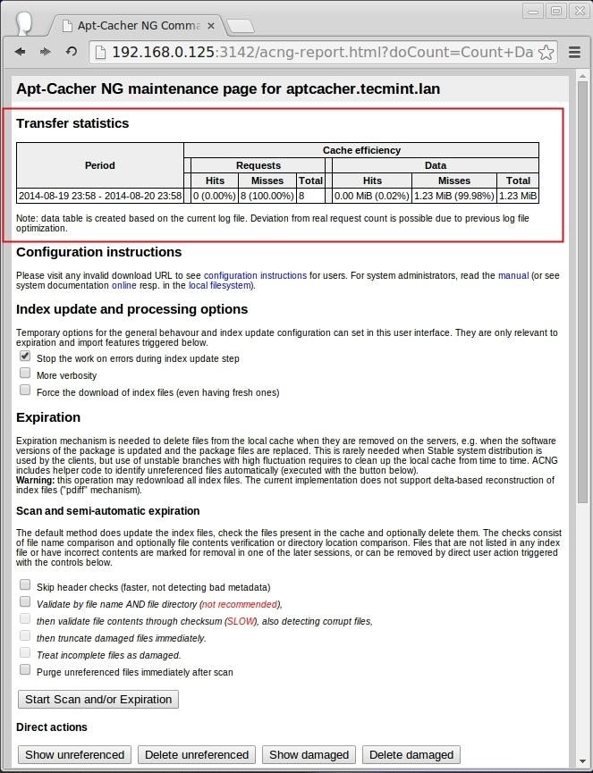 If we need to see Cache Count data, which we have downloaded, we can access ip:port (192.168.0.125:3142) in any web browser to see the statistics, as I have explained above.