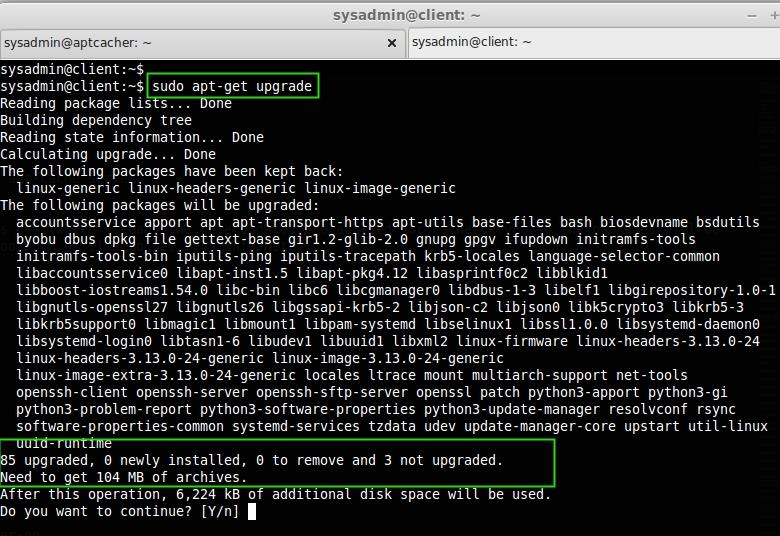 I’m not even in a data center, I’m just using a 256Kbps internet connection where the download speed will just be 50Kbps to 60Kbps. But see the below image of how it fetched 104MB in 3 Seconds. That’s because it is already cached in the apt-cacher-ng server.