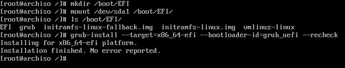 # grub-install --target=x86_64-efi  --bootloader-id=grub_uefi --recheck