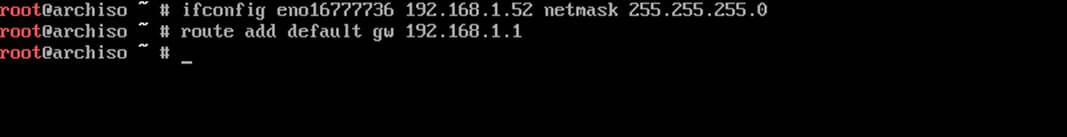 If your network is not configured to use DHCP to dynamically allocate IP addresses to clients, issue the below commands to configure an IP address manually for the Arch Live media.