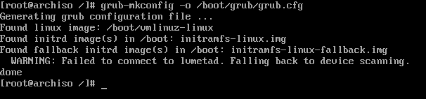# grub-mkconfig -o /boot/grub/grub.cfg