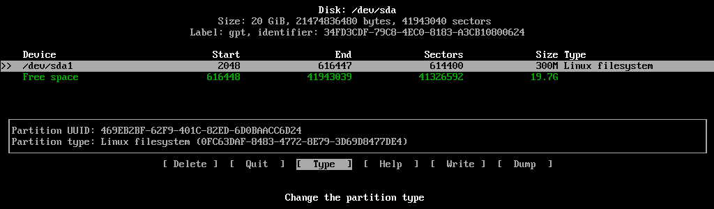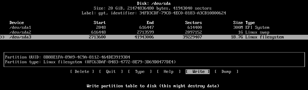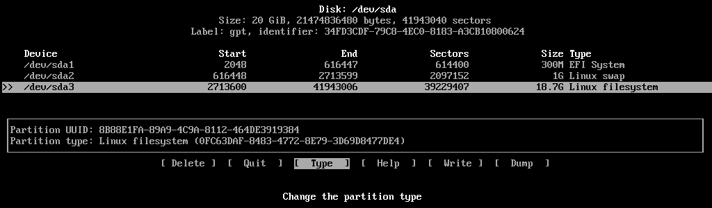 5. In the next step, we’ll start to configure the Hard Disk partitions. You can run the cfdisk, cgdisk, parted, or gdisk utilities to perform a disk partition layout for a GPT disk. I strongly recommend using the cfdisk utility for simplicity and ease of use.