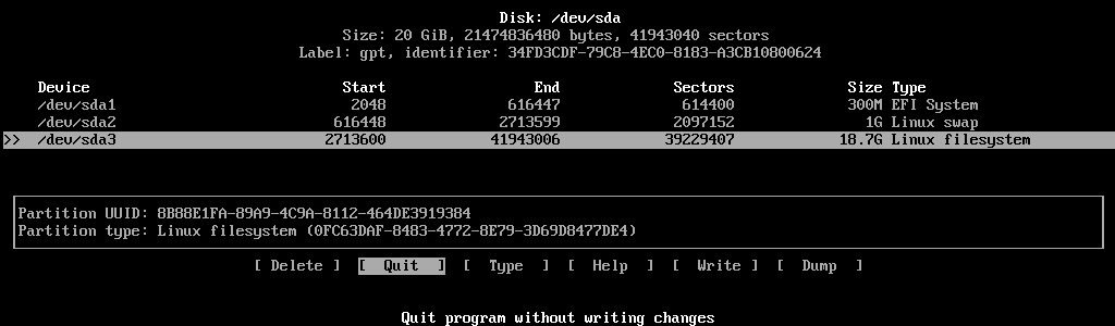 Finally, select the ‘Quit‘ option to exit the disk management console.