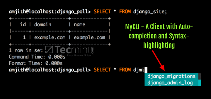 MyCLI is an easy-to-use command line (CLI) interface for the popular database management systems: MySQL, MariaDB, and Percona with auto-completion