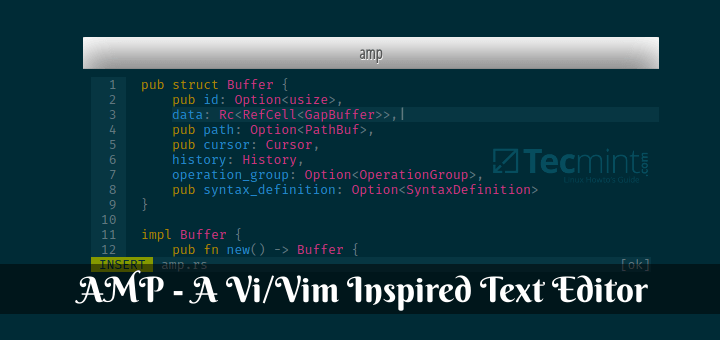 Amp is a lightweight, fully-featured Vi/Vim inspired text editor for your Linux terminal, written in Rust. It provides the core