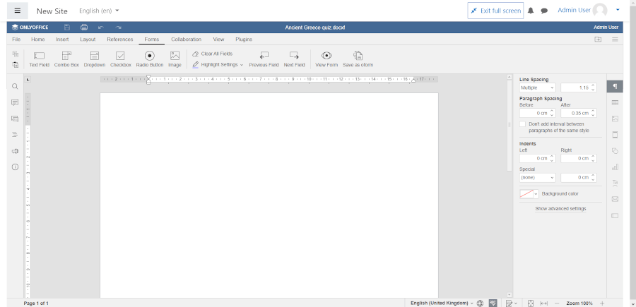 In this article, you will learn how to enhance the learning experience in Moodle by creating fillable forms with the help of ONLYOFFICE Docs, an online office suite for Linux, which handles all popular office files, such as text documents, spreadsheets, presentations, fillable forms, and PDFs.