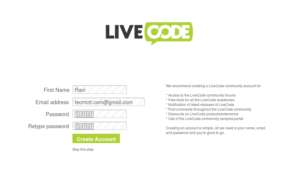 chmod +x LiveCodeInstaller-9_6_13-Linux.x64 sudo ./LiveCodeInstaller-9_6_13-Linux.x64