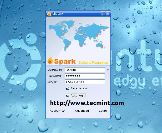 Once you’ve installed Spark client, open the application and enter the username, password, and IP address of Openfire server.