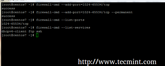 # firewall-cmd --add-port=1024-65534/tcp # firewall-cmd --add-port=1024-65534/tcp --permanent # firewall-cmd --list-ports # firewall-cmd --list-services # firewall-cmd --reload