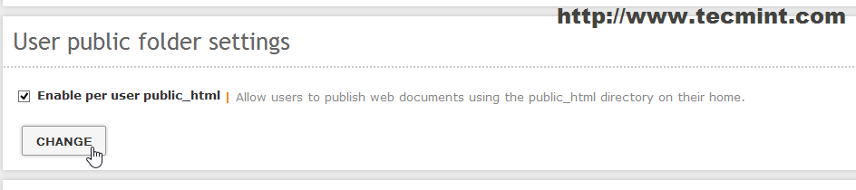 2. Navigate to Web Server Module -> check Enable peer user public_html, hit on Change button then Save changes.