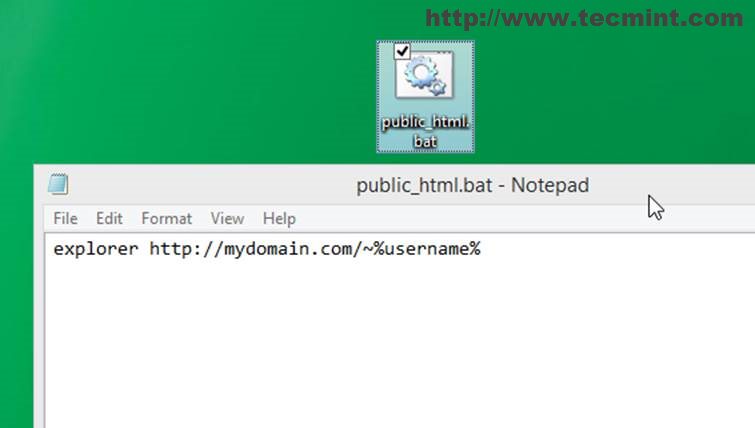 To enable it logon to a Windows system joined to domain and create a windows batch script named “public_html.bat” using Notepad with following content.