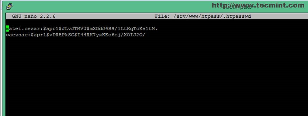 17. Now the .htpasswd file is created and encrypted using MD5 salt algorithm and you can add as many users required to access web folder content as required.