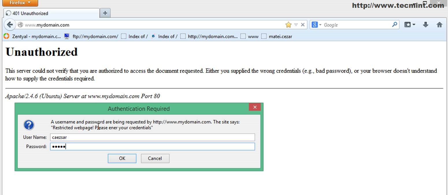 Also if you want to protect other domains or subdomains created on your server with the credentials created already, just copy the .htaccess file on your subdomain Apache path and make sure www-data has read access.