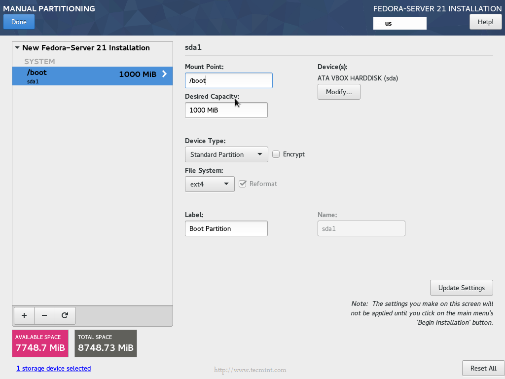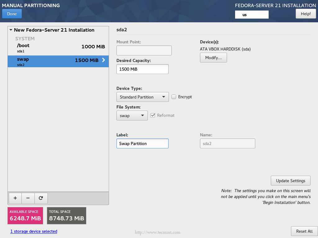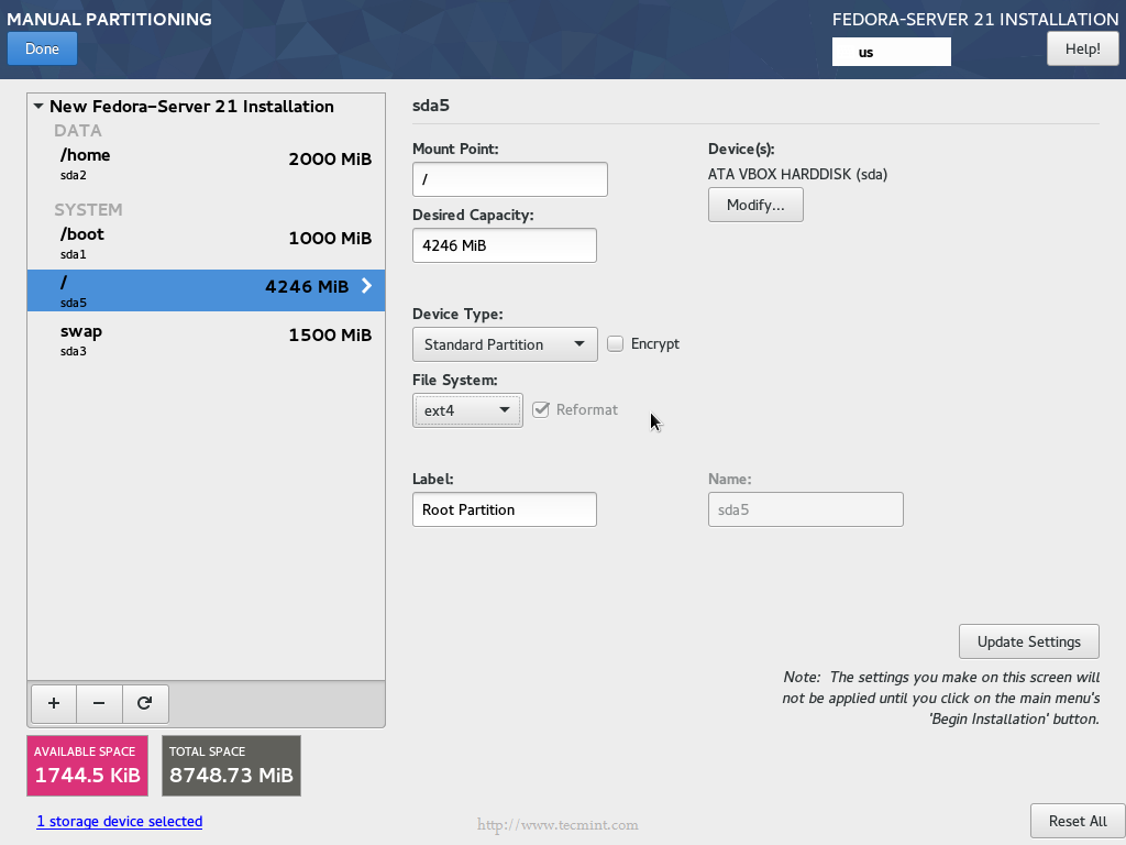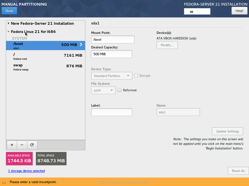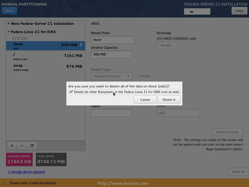 14. Now as you can see.. I have Fedora 21 Workstation installed on my hard drive, I’ll have to remove its partitions completely in order to install Fedora 21 Server on them.
