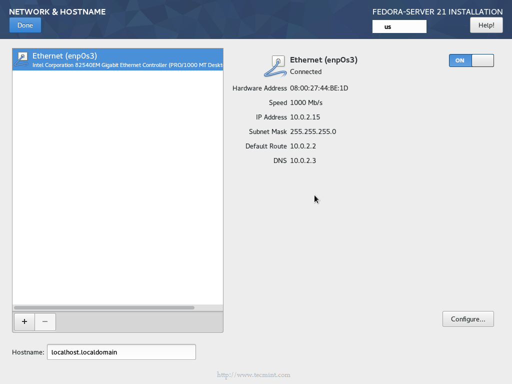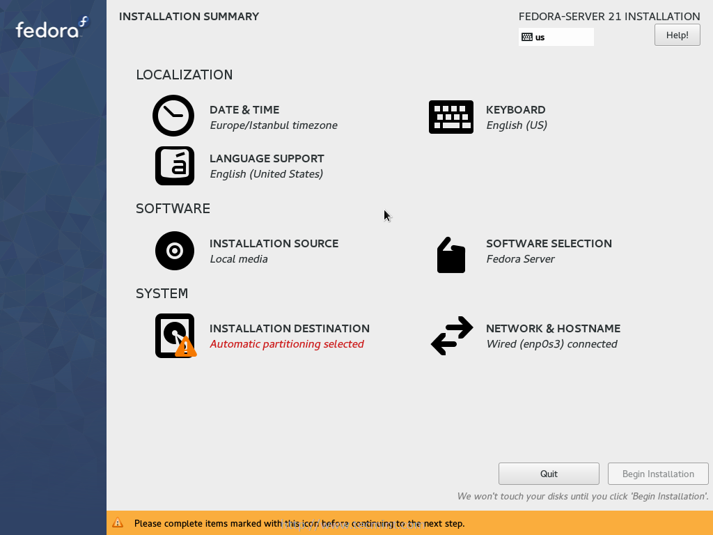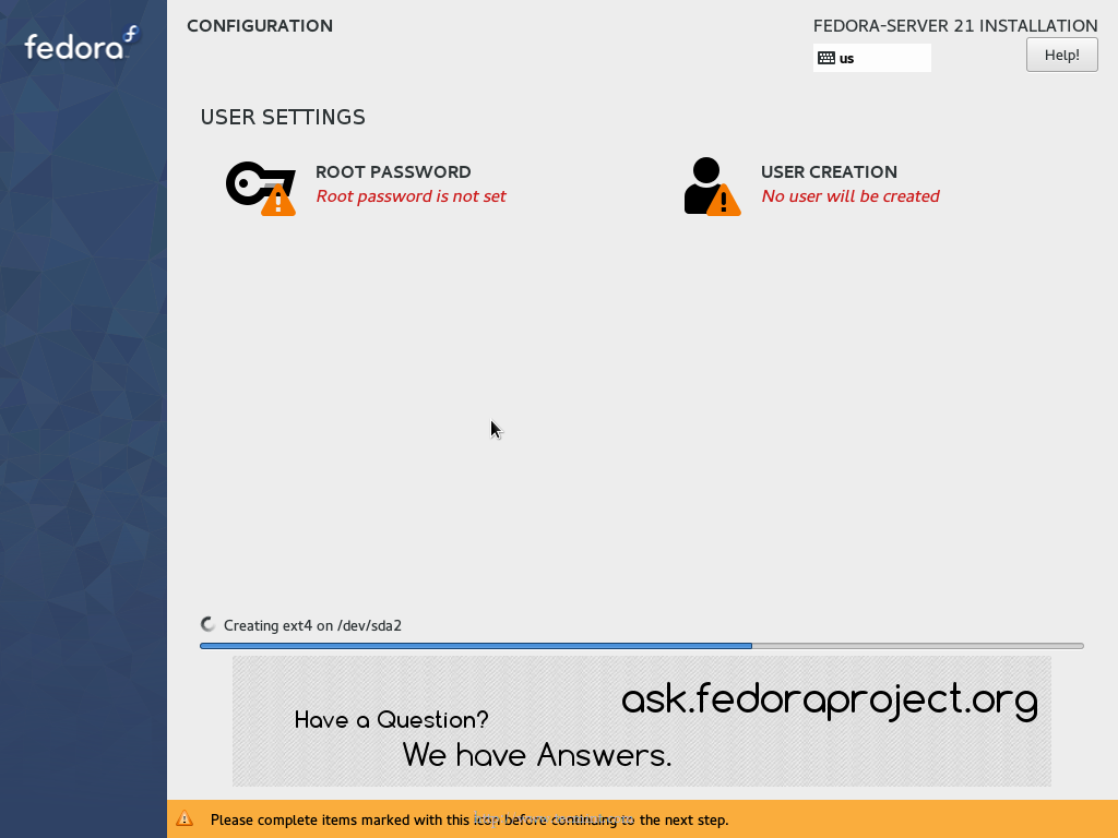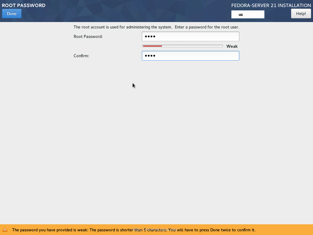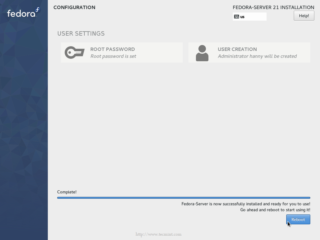 Congratulations! your Fedora 21 Server is up-and-ready for use.