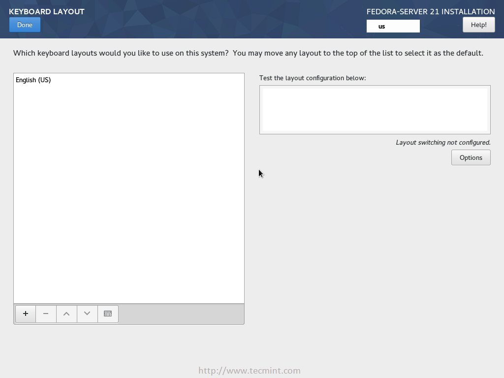 6. Go back to the installation summary, and click on “Keyboard” to configure the keyboard layouts.