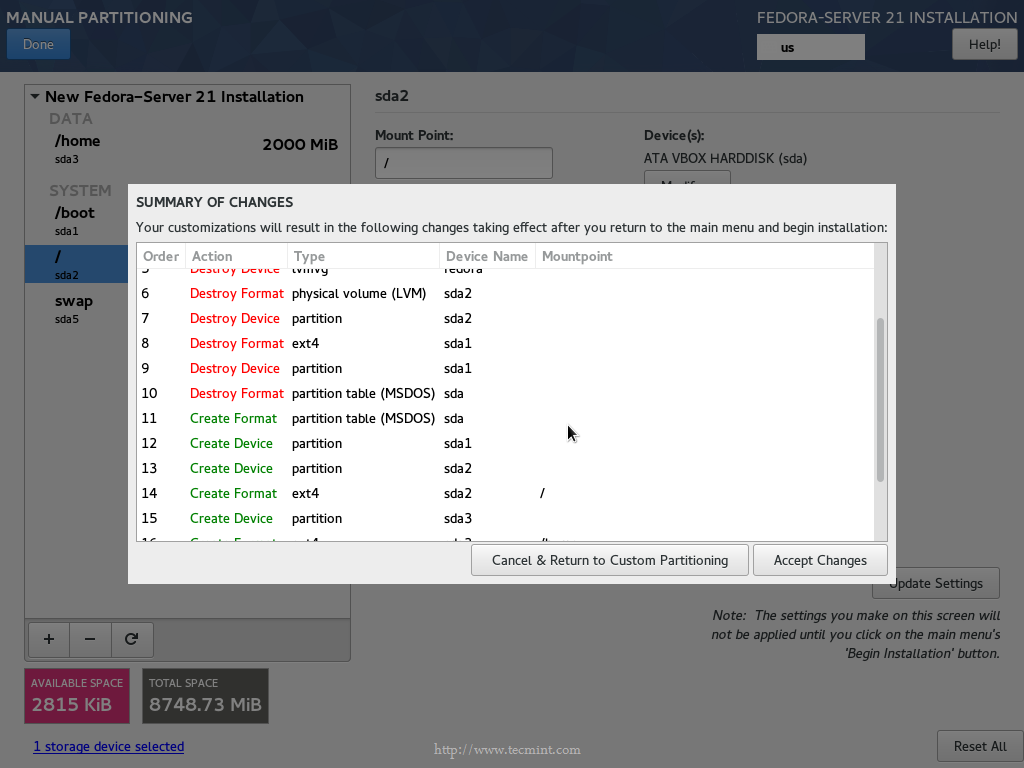 19. After creating all above partitions, click on the “Done” button and confirm.