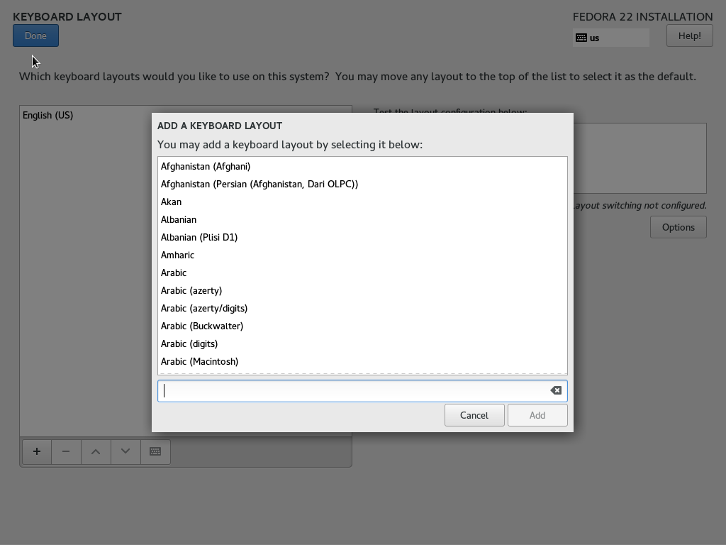 5. First Select ‘Keyboard‘. Scroll through and add as many keyboard Layouts you want to add. You have to click on ‘+‘ every-time you want to add a new Layout followed by clicking on ‘Add‘. When all the required Keyboard Layouts are Added, Click Done on the Top Left Corner of the Screen.