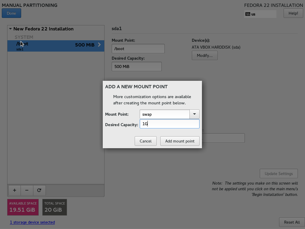 10. Again Click on + and Create SWAP space. Add Desired Capacity and click “Add mount Point”.
