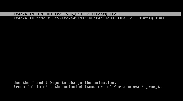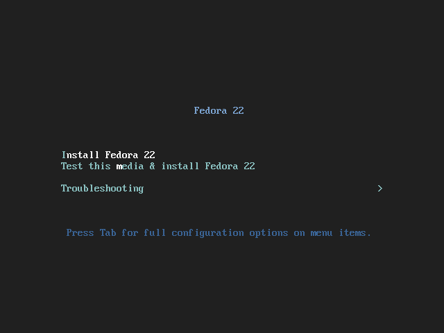 21. The system will reboot and you may notice Fedora 22 Boot Menu.
