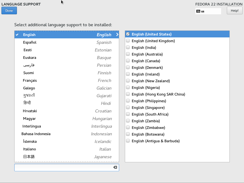 From the resulting screen (Installation Summary window), Click ‘Language Support‘. Select all the Language Support you want by putting a check mark on the required boxes and click done! When done.