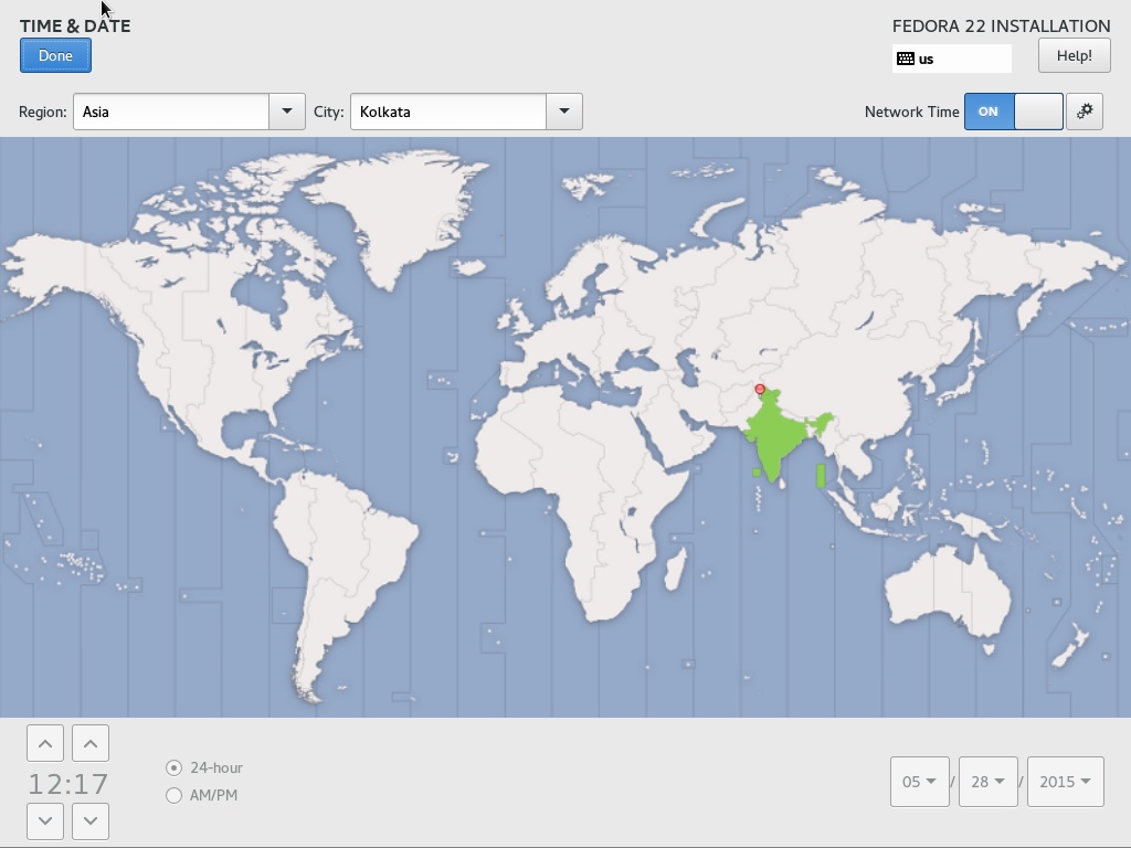 Again, you will get “Installation Summary” Window. Click on ‘Time & Date‘. Set time, Date and Geographical Location by clicking on the world map. When everything seems okay, click Done.