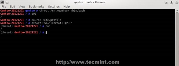 chroot /mnt/gentoo /bin/bash
