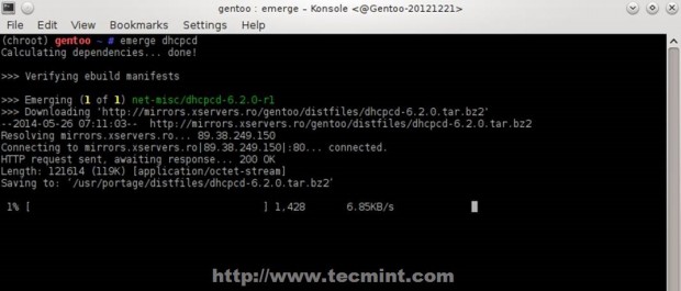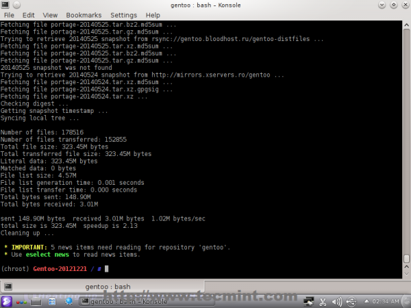 Moving on, you need to install a snapshot of the Gentoo ebuild repository. This contains a set of files that inform portage about the available software titles, the profiles a systems administrator can select, etc.