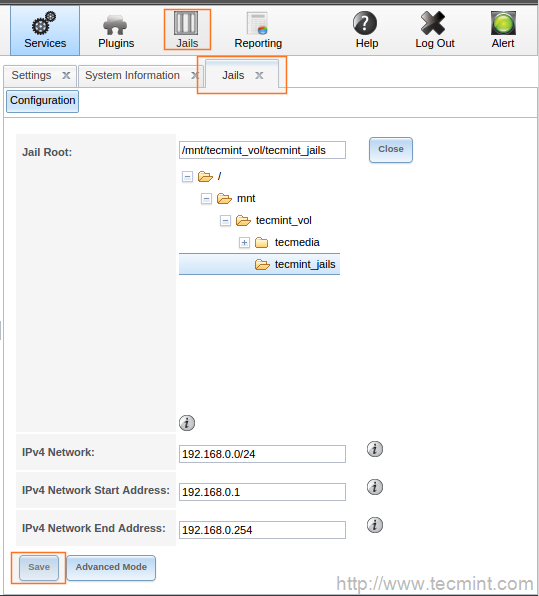 To create a Jails, navigate to Jails and click on “Add” to create a new jail.