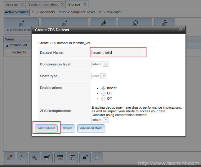 Navigate to your newly created MediaPool, click on Add Dataset, enter a name for the dataset (e.g., PlexMedia), configure the settings as needed, and then click “Save” to create the dataset.