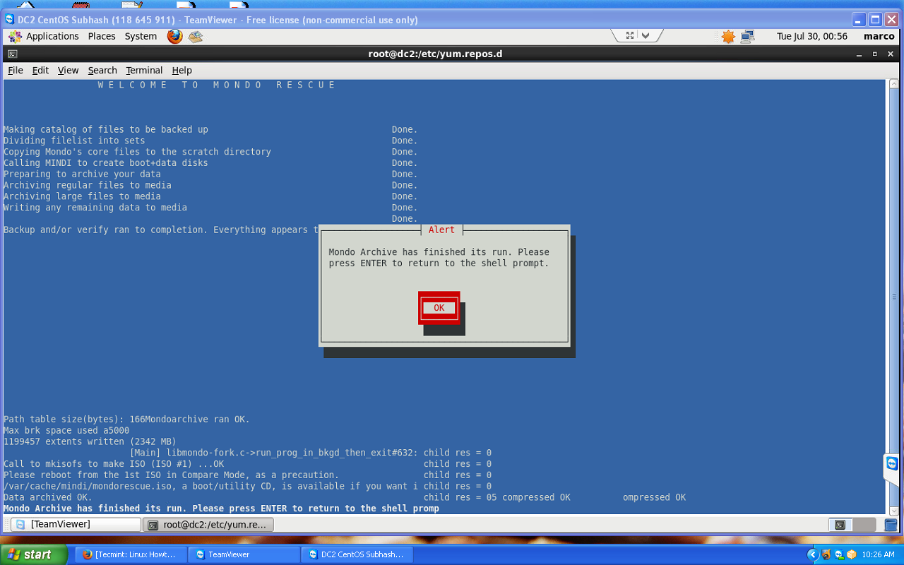 Mondo Rescue Backup Completed