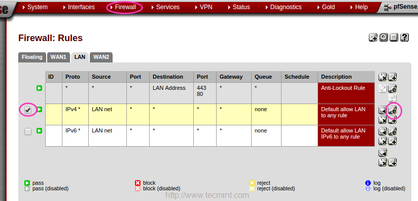 18. Now, here we need to assign firewall rules for failover, To configure firewall rules navigate to “Firewall” and choose “Rules“. Under LAN we have to add new rules for failover.