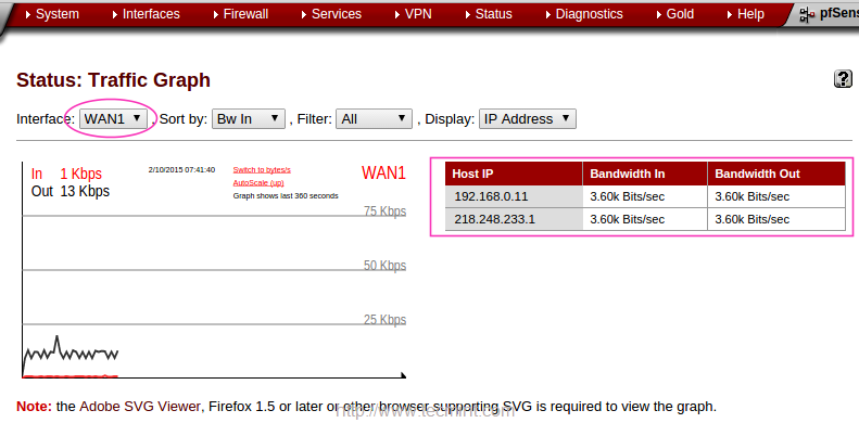 15. To get the real time Graph we can use “Traffic Graph” under “Status” menu.