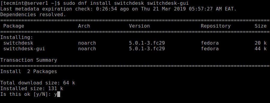 You can also switch your Fedora desktop from the command line by simply passing the selected desktop environment as the only argument to the switchdesk command, for example, to switch to Cinnamon, run the following command.
