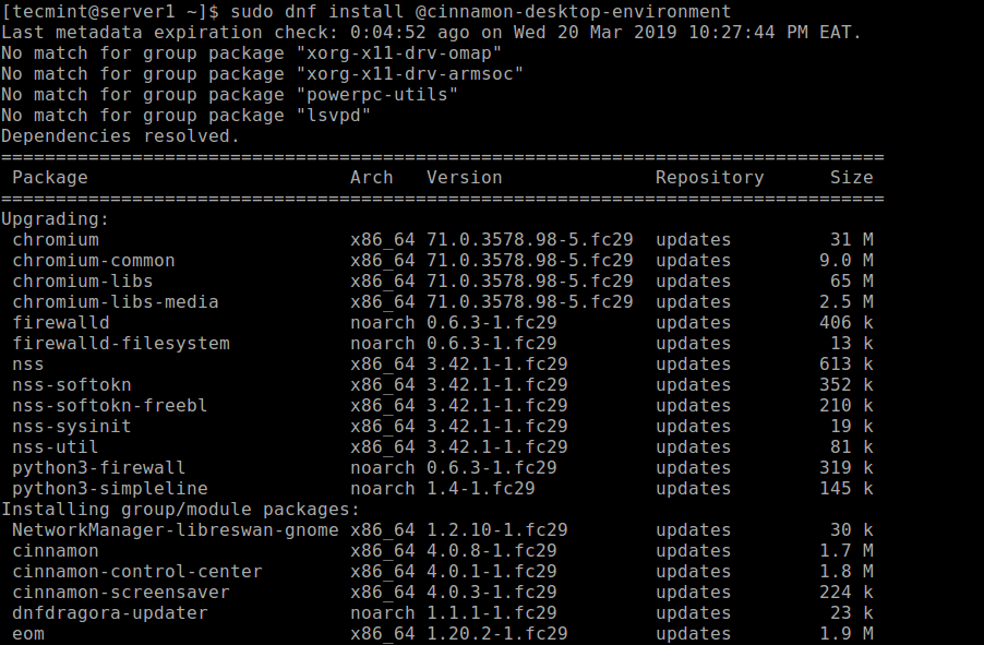 To install different desktop environments in Fedora, first, you need to list all the available desktop environments by running the following command.