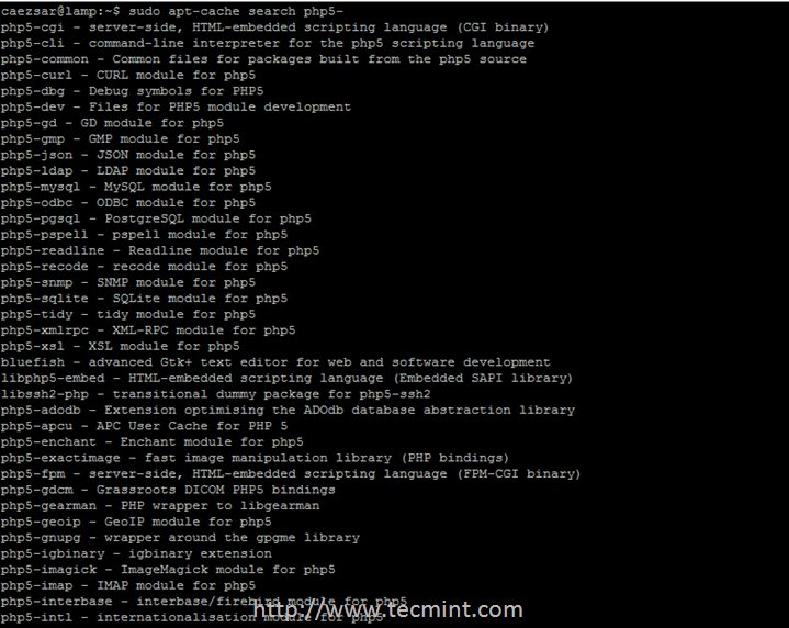 6. If you later need to install a PHP module use the below commands to search and find out detailed information about any specific PHP module or library.