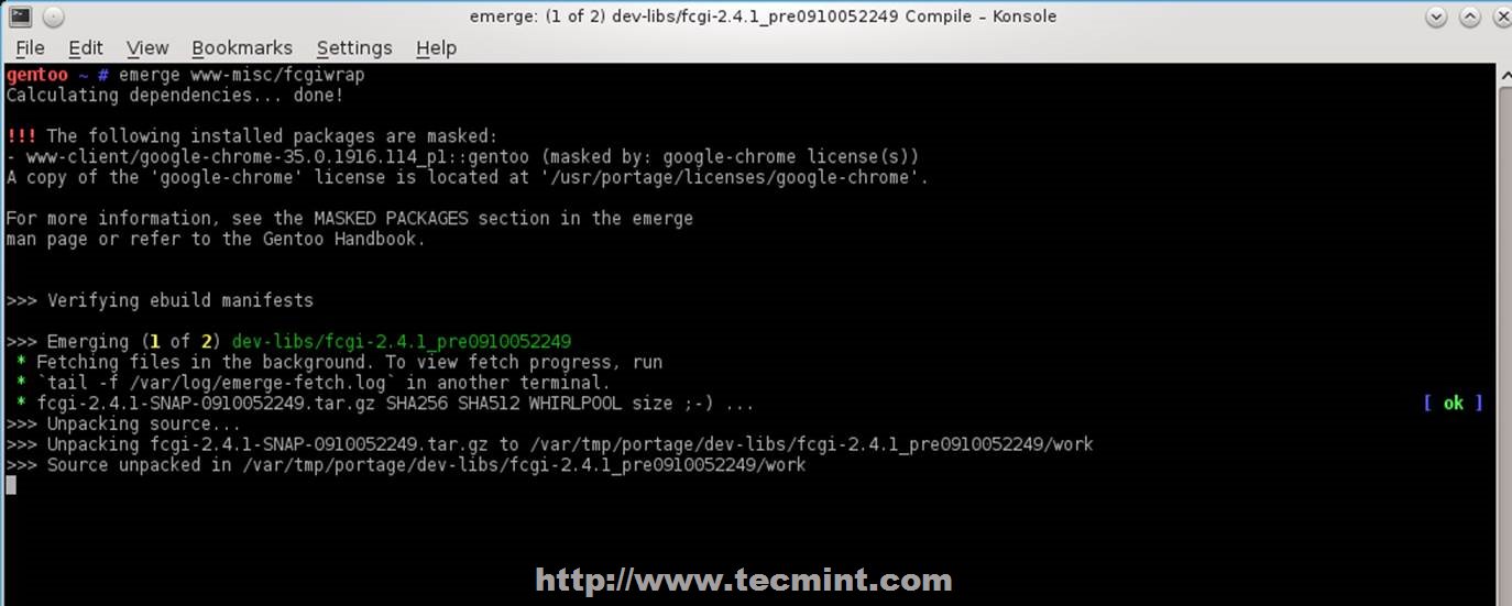 1. Let’s first start by installing FCcgiwrap process on Gentoo Linux using the following command.