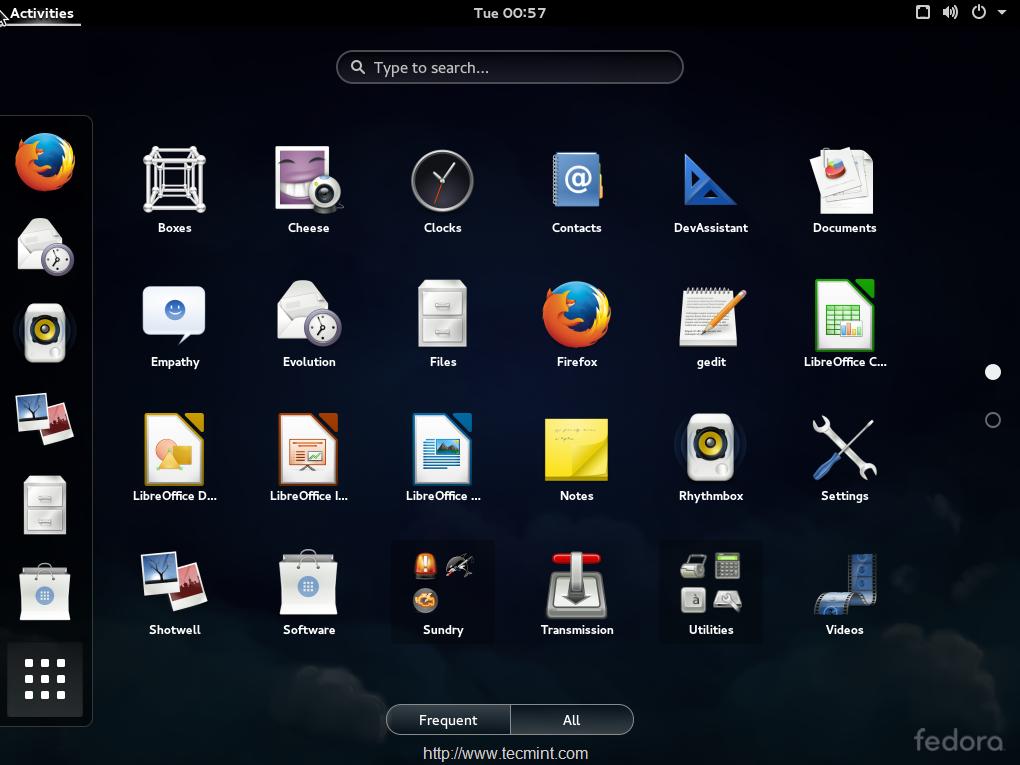 Fedora is an open source operating system, which is based on Linux kernel developed and it’s supported by RedHat. Fedora’s default desktop is GNOME environment with default interface GNOME Shell, Fedora have other desktop environments including KDE, MATE, Xfce, LXDE and Cinnamon.