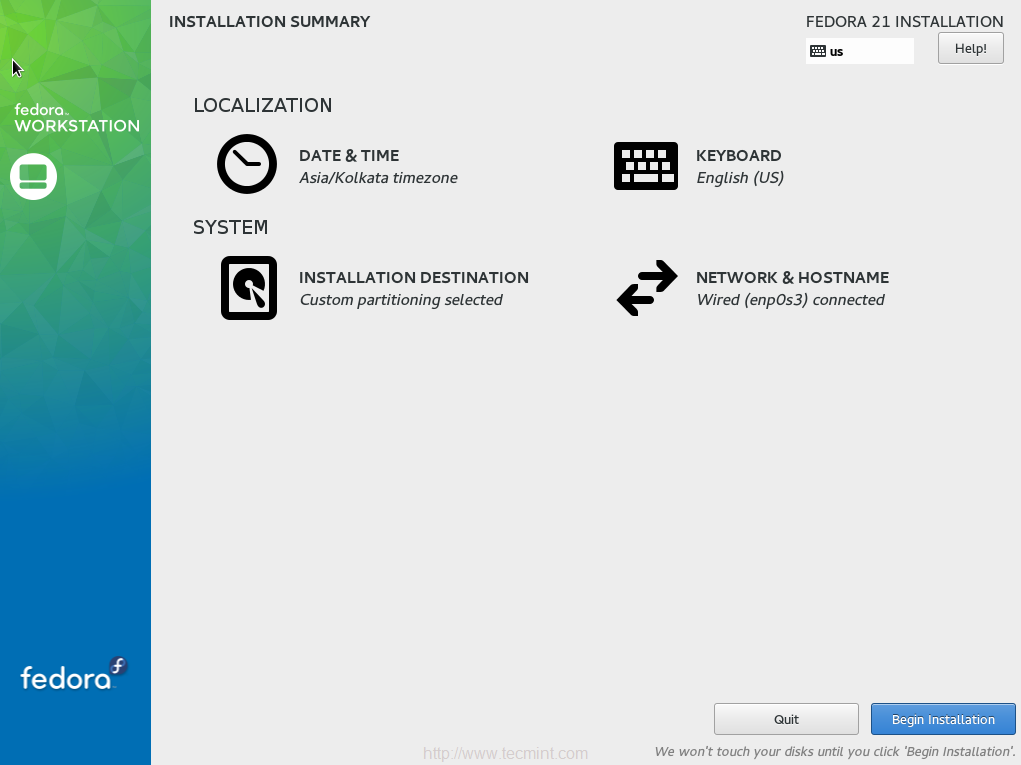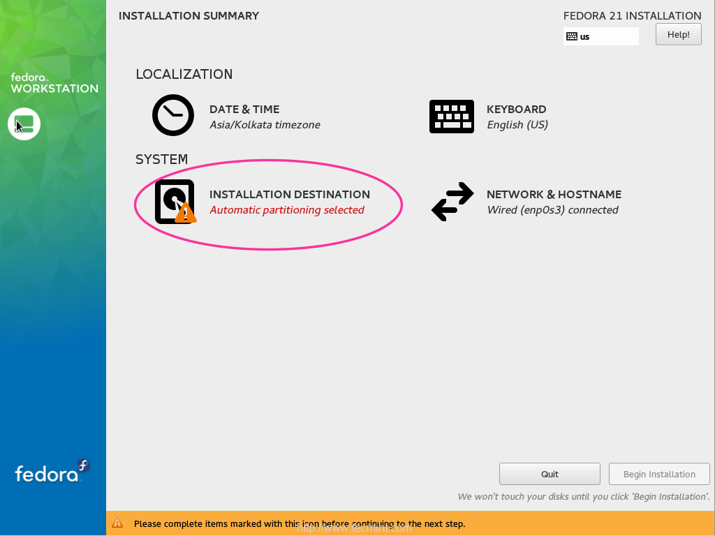 9. Now you can see the Installation Destination was completes successfully and click on ‘Begin Installation‘ to start installation process.