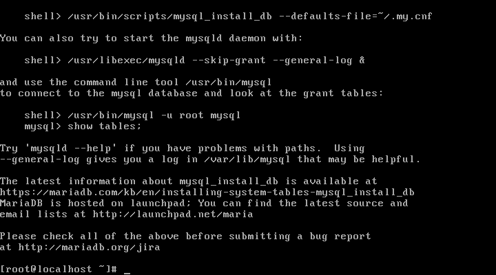 shell> /usr/bin/scripts/mysql_install_db –defaults-file=~/.my.cnf