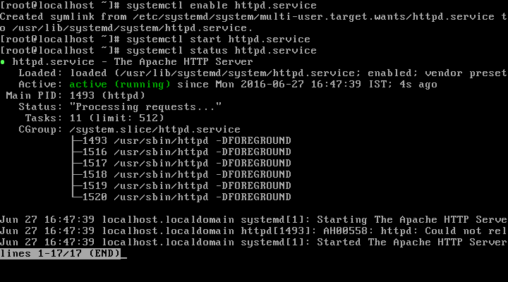 When the installation process is complete, you need to restart the Apache web server, this will allow all the changes to take effect before you can have a complete working LAMP stack.