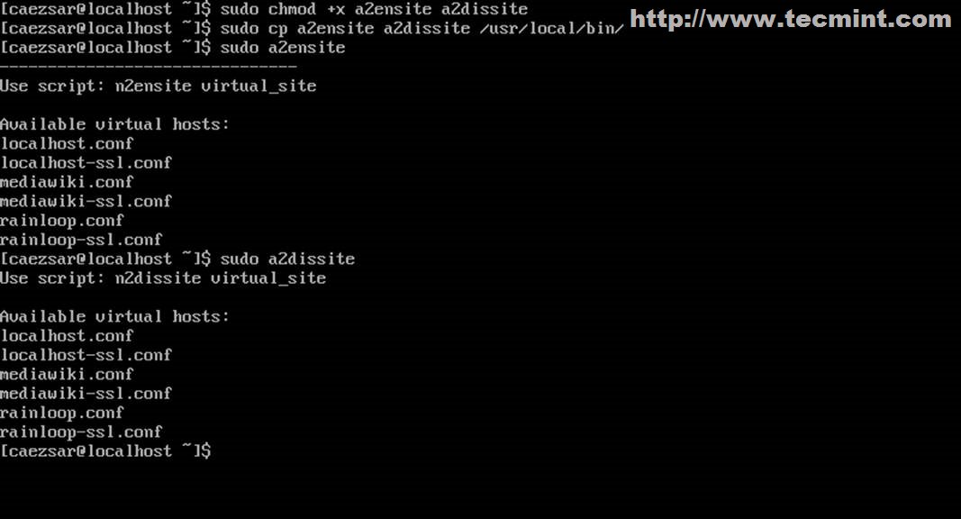 sudo a2ensite tecmint.com sudo systemctl restart httpd
