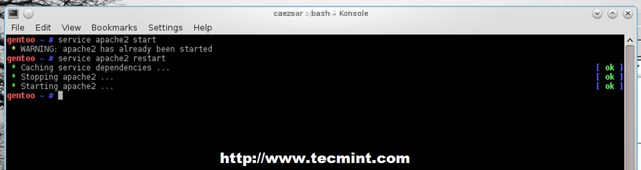 That’s all! Now you have a dynamic web environment with Apache, PHP scripting language and relational MySQL database on a high flexible and customizable server platform provided by Gentoo.