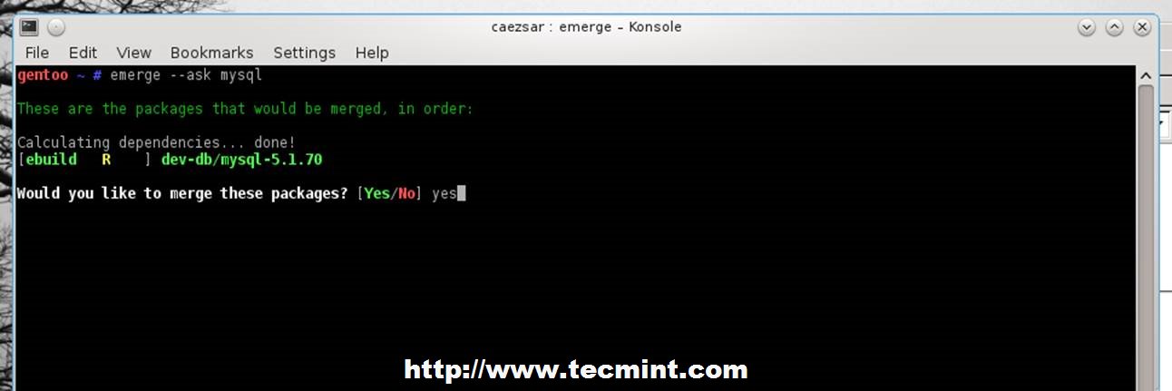 # emerge -pv mysql # emerge --ask dev-db/mysql