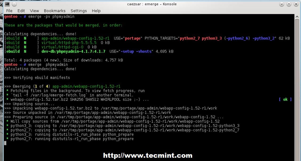 # emerge -pv phpmyadmin # emerge dev-db/phpmyadmin