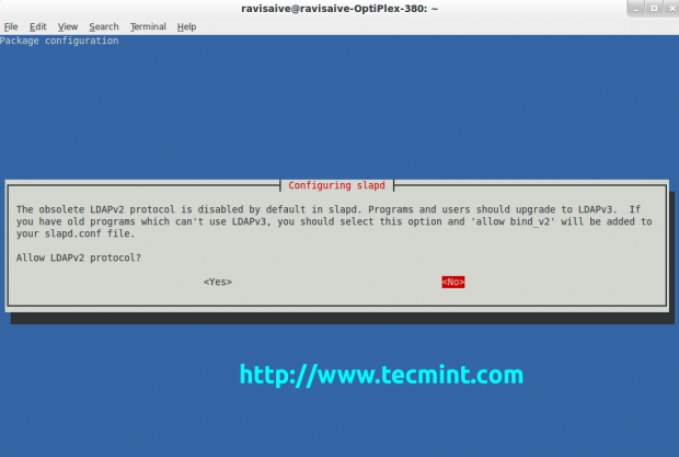 Omit OpenLDAP Server Configuration, which allows you to configure the server settings. Selecting “No” ensures that you can set up the LDAP server according to your requirements.