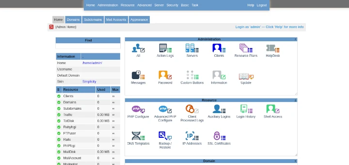 On the left pane is a list of options that give you access to various server functionalities. From here you can perform a list of system administration tasks as discussed earlier in the introduction.